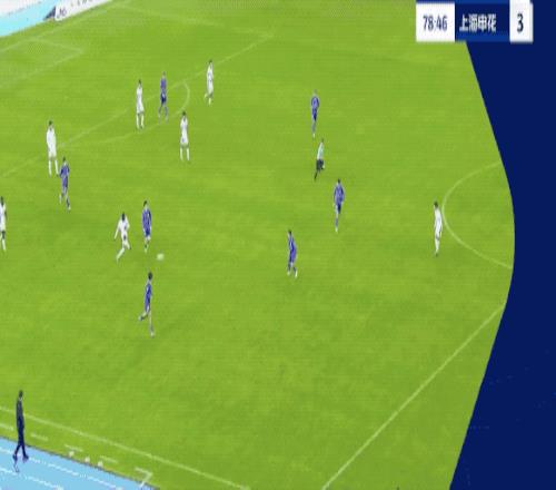 上半场补时阶段,高天意面对三人防守完成过人,之后的射门被挡出了底线。
