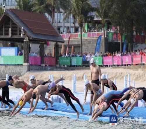 2025年11月6日,第十五届全运会马拉松游泳比赛男子组决赛在深圳大鹏新区桔钓沙海域举行。发令枪响,运动员相继跃入海中。本次赛事是全运会历史上首次在真实海况中举行的马拉松游泳项目。
