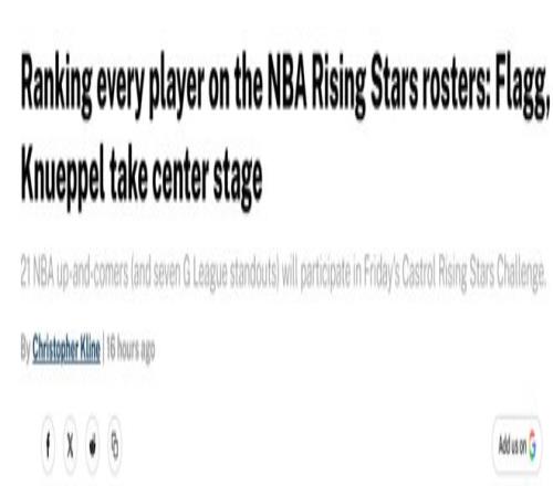 杨瀚森第22名!美媒公布NBA新秀赛球星排名:火箭队谢泼德高居第6
