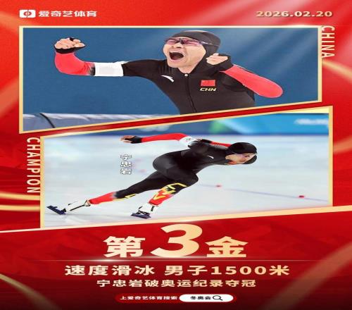 北京时间2月20日,冬奥会男子1500米速度滑冰比赛中,中国选手宁忠岩以1分41秒98打破奥运纪录获得金牌!为中国代表团斩获本届冬奥第3枚金牌。