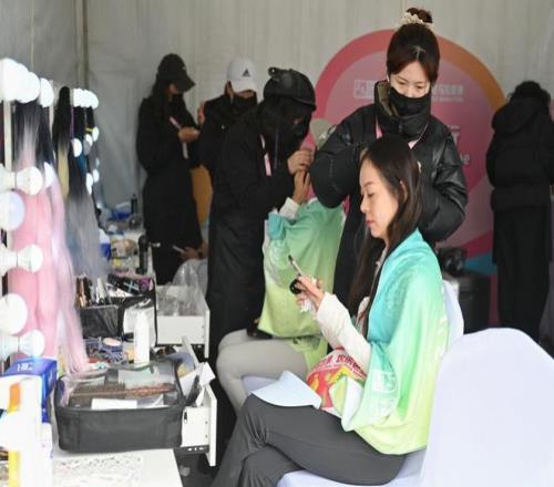 跑者可以在赛后享受美妆服务,这也是上海女子半马的特色之一。 澎湃新闻记者 朱伟辉 摄