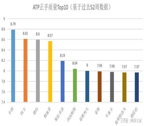 基于以上三大类指标,ATP列出了过去52周正手质量Top10榜单,如下图所示。