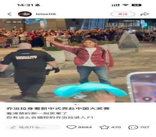 拉塞尔被认为是这次上赛最“宠粉”的车手。作为少数开了抖音账号,每年都特别定制中国头盔的车手,不管在哪里遇到热情的中国粉丝,总会至少签一排再走,并且在练习赛开始就主动走到跑道边上和粉丝打招呼,被调侃为“龙颜大悦”“爱民如子”。