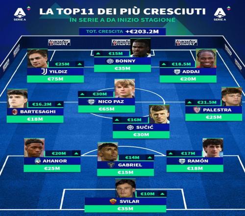 德转意甲本赛季身价涨幅最高11人阵容:帕斯暴涨3000万欧领衔