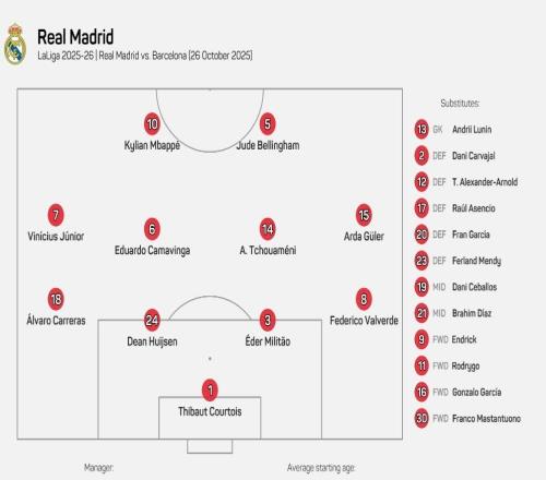 25岁15天!皇马排出了过去20年最年轻的国家德比首发